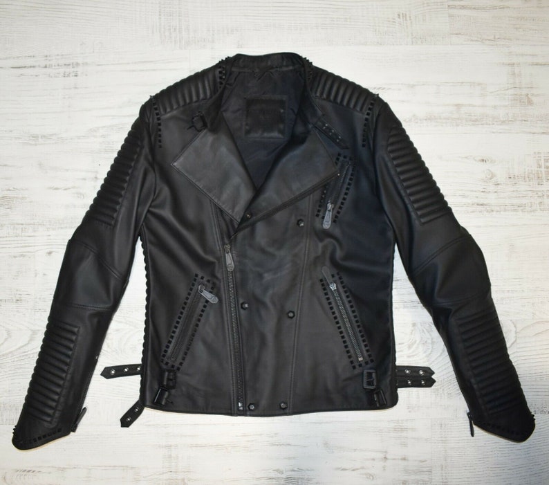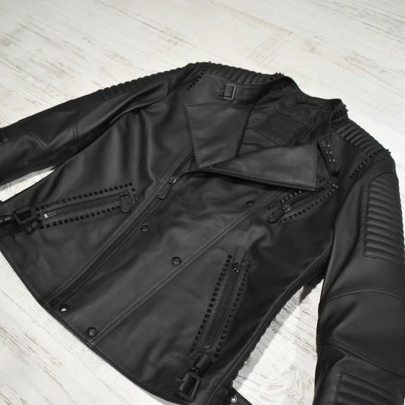Men's Handmade Black Studs Brando Real Cowhide Leather, Motorcycle Quilted Design Gothic Fashion Jacket, Personalized Zippered Jacket,