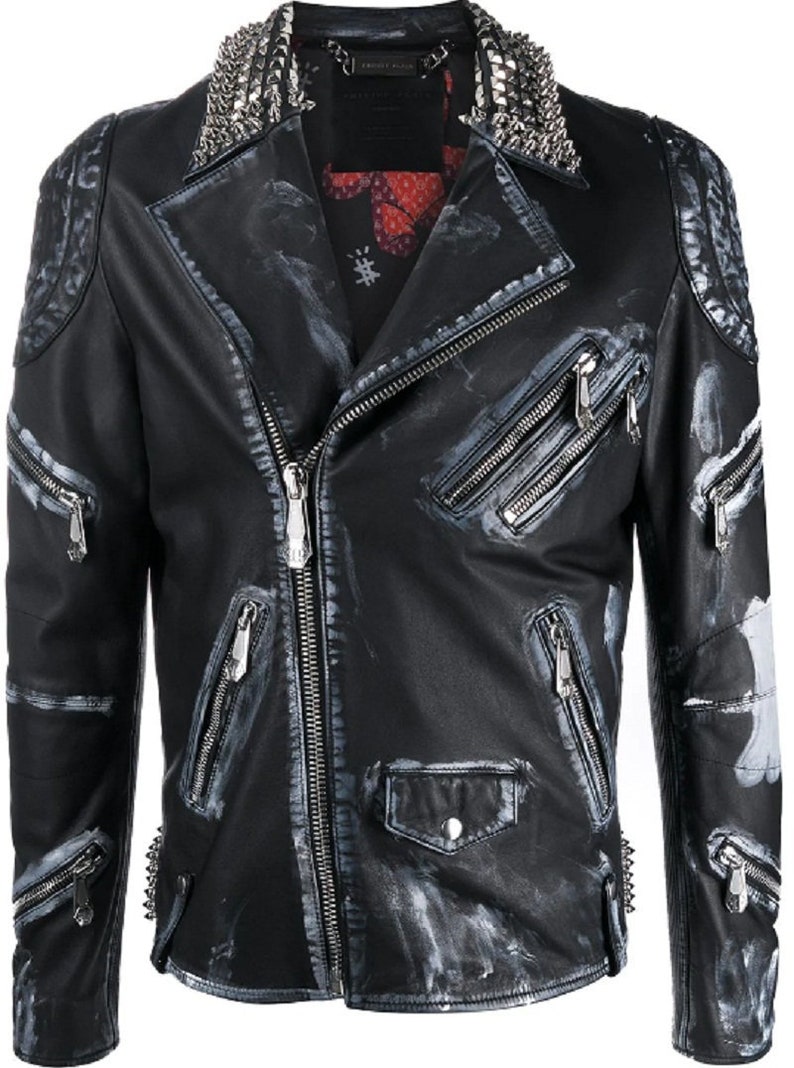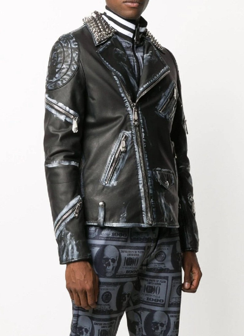 Personalized Bikers Heavy Studs Collar Real Cow Skin Leather Jacket, Men's Handmade Bikers Fashion Punk Jacket, Motorcycle Gothic Jacket,