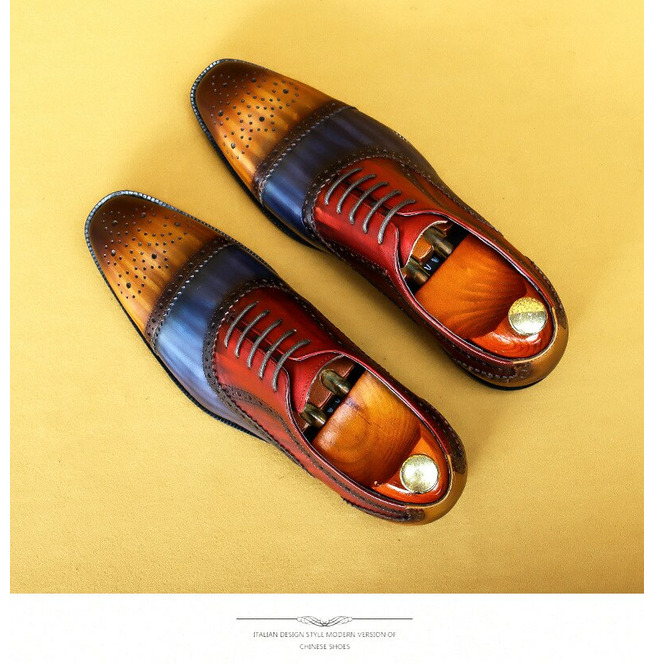 Three Tone Semi Brogue Premium Leather Oxford Laces Patina Formal Wedding Shoes