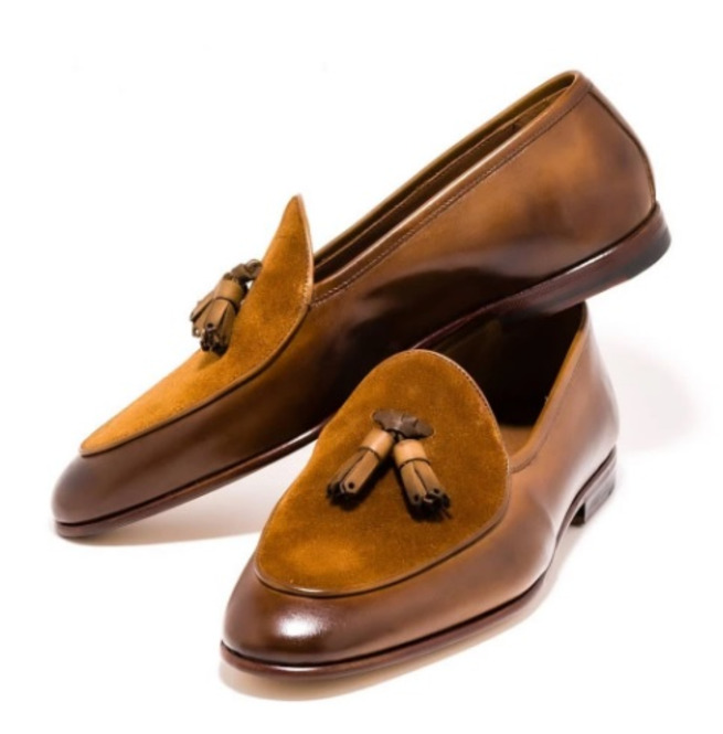 Tassels Loafer Suede Leather Slip On Handmade Patina Brown Formal Wedding Shoes