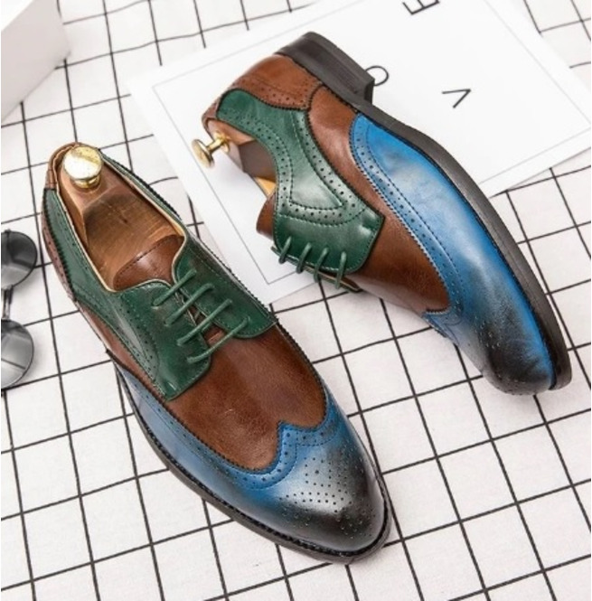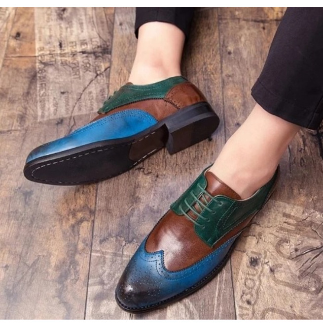 Luxury Wedding Pair Three Tone Brogue Wingtip Men's Derby Leather Lace UP Shoes