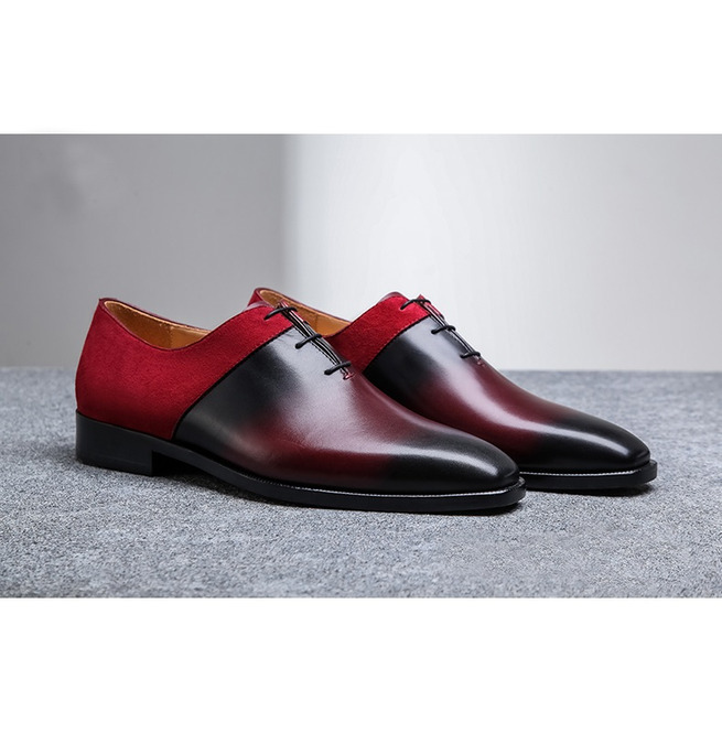 Red Party Wear Back Suede Patent Toe Genuine Leather Oxford Laces Formal Shoes