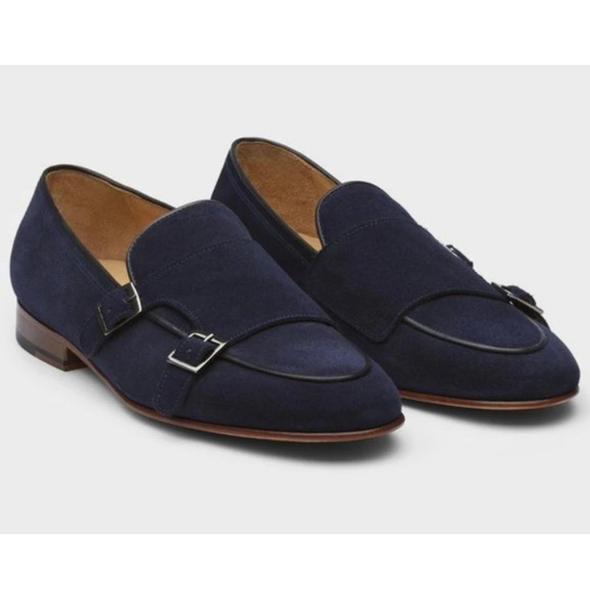 Vintage Style Navy Blue Monk Buckle Strap Suede Leather Customize Wedding Shoes