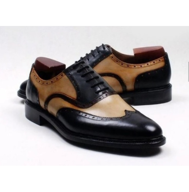 Made To Order Oxford Twin Tone Wingtip Genuine Leather Men's Formal Laces Shoes