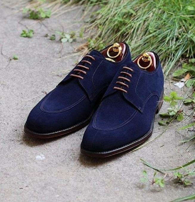 Made To Hand Derby Blue Suede Leather Split Toe Men's Lace Up Formal Shoes