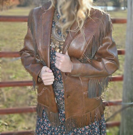 Made To Hand Cow Girl Fringes Brown Jacket, Personalized Premium Leather Button Up Coat, Western Style Coat Jacket,