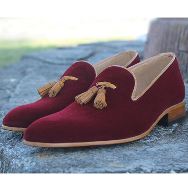 Men's Party Wears Maroon Suede Leather Pull On Tassels Loafer Formal Shoes