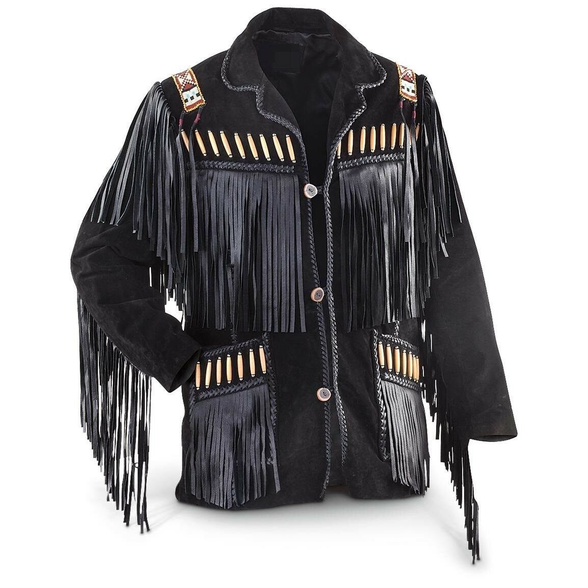Hand Crafted Bones And Beads Men's Coat, Button Up Fastening Buck Skin Buffalo Jacket, Western Cow Boy Fringes Coat Jacket,