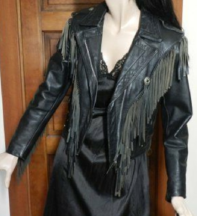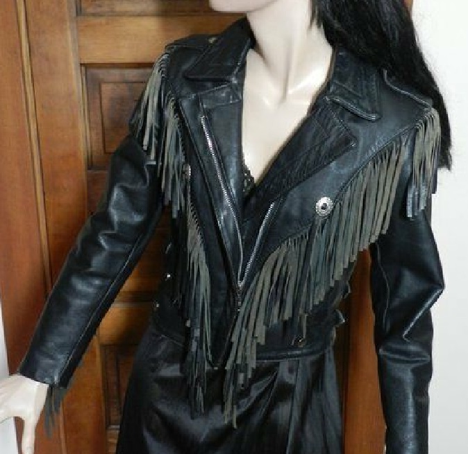 Bikers Personalized Cow Skin Leather Jacket, Women's Brando Suede Fringes, Front Zippered And Shoulder Epaulets Motorcycle Jacket,