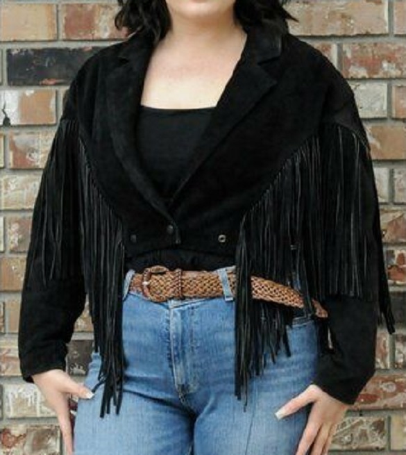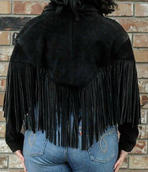 Made To Order Black Suede Leather Fringes Coat Women's Real Buck Skin Buffalo Western Coat Jacket