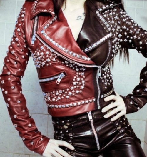 Dual Shades Heavy Studs Genuine Leather Jacket, Personalized Lapel Collar Bikers Punk Jacket, Women's Handmade Fashion Jacket,