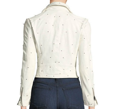 Ladies Motor Bike Silver Studs Punk Jacket, Customize Bikers Lapel Collar Genuine Leather Jacket, Personalized Women's Fashion Jacket,