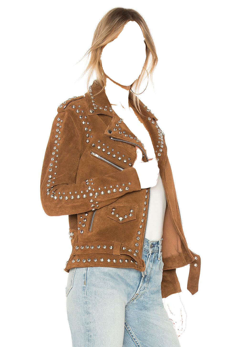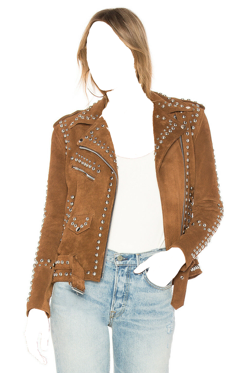 Brando Brown Color Suede Leather Silver Studs Waist Belted Jacket, Personalized shoulder Epaulets Bikers Fashion Jacket,