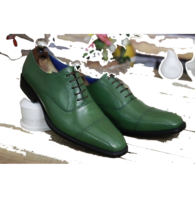 Elegant Green Patina Cap Toe Oxford Real Leather Black Sole Lace Up Formal Shoes