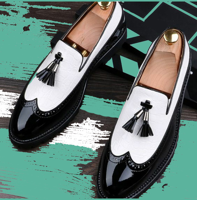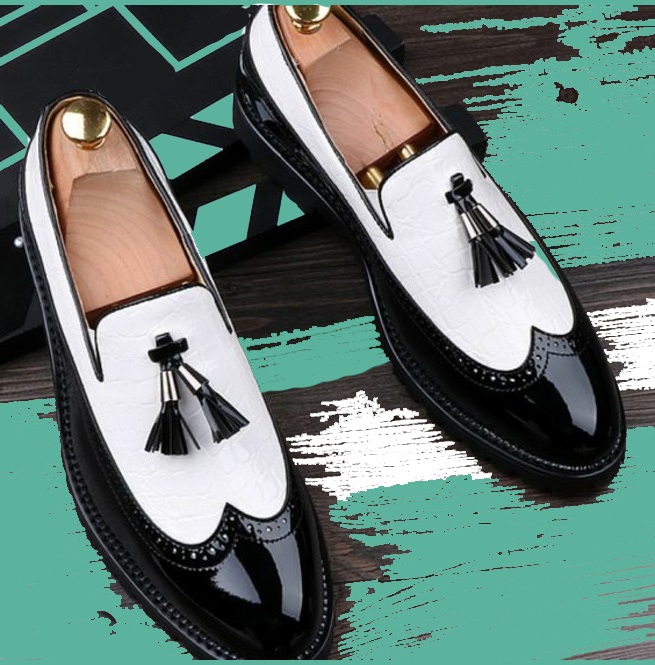 Spectator Black White Tassels Loafer Cowhide Leather Slip On Formal Party Shoes