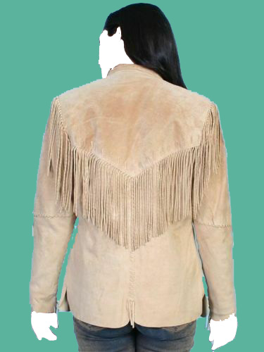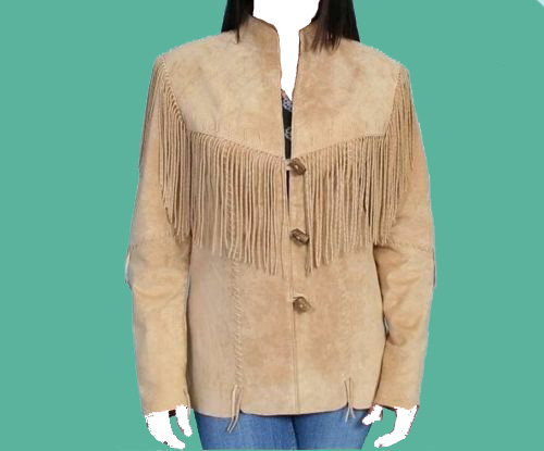 Customize Beige Color Buck Skin Buffalo Suede Leather Women's Fringes Western Style Cow Girl Jacket