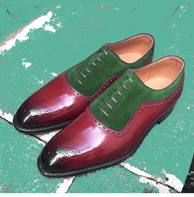 Perfect Pairs Multi Color Patent Medallion Toe Suede Leather Men's Oxford Shoes