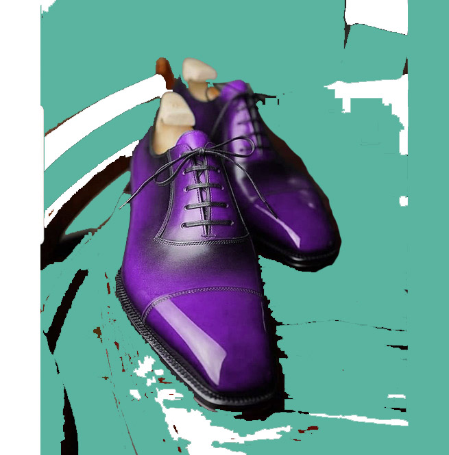 Duke Pair Purple Cap Toe Lace Up Fastening Real Leather Oxford Formal Shoes