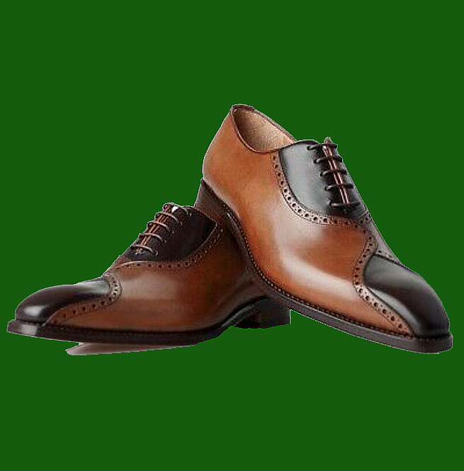 Oxford Two Tone Patina Hand Stitched Lace Up Cow Skin Leather Men's Formal Shoes All Sizes Available